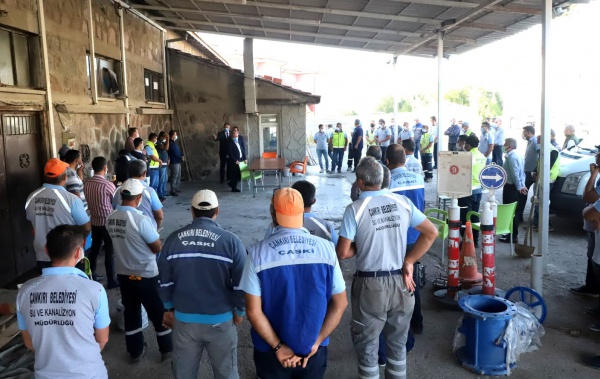Personel iş verimliliğinin ve faaliyet programlarının değerlendirildiği son toplantı, ÇASKİ Park’ta Su ve Kanalizasyon Müdürlüğü ekipleri ile yapıldı. Hizmetlerin kalitesini artırmak için personel ile bir araya gelmenin ve motivasyon sağlamanın önemine dikkat çeken Başkan Esen, daha iyi ve etkili hizmet vermenin yolunun personeli dinlemek ve çalışma programına mümkün olduğunca uymaktan geçtiğini ifade etti. Alt ve üst yapı hizmetlerinin belediyecilik çalışma alanı içerisinde önemli bir yere sahip olduğunu söyleyen Esen, saha çalışanlarını özverili çalışmalarından dolayı tebrik ederek “Çankırı Belediyesi olarak büyük bir aileyiz. Her çalışanımız da bu ailenin önemli bir ferdi. İşini iyi yapan, yaşadığı şehre ve o şehrin insanına sahip çıkan her çalışanımız övgüyü hak ediyor. ” dedi.