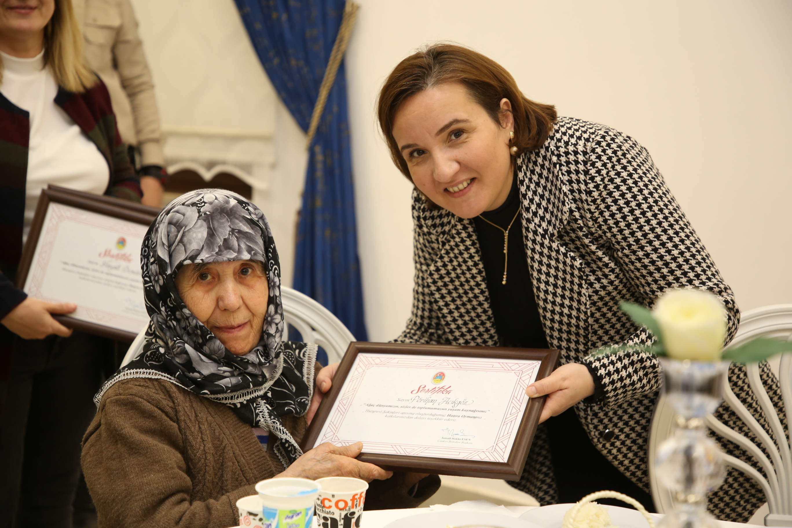 Program sonunda Başkan Esen ve eşi, huzurevi sakinleri ile tek tek ilgilenerek onlara hediye takdim etti, ağaç dikimine katıldıkları için de belge verdi. Esen çifti, büyüklerinin hayır dualarını da aldı.