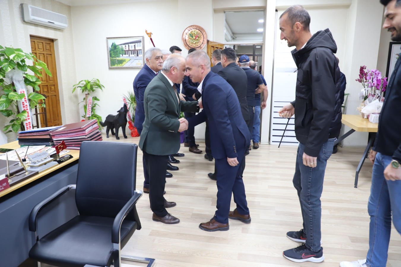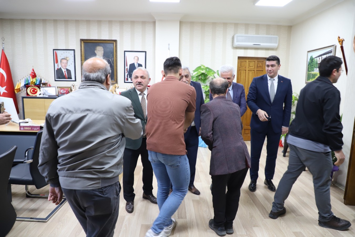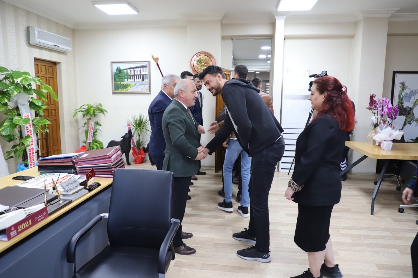 Belediye Başkanlığında ikinci dönemine giriş yapan İsmail Hakkı Esen, ikinci döneminin ilk Ramazan Bayramı sonrasında personeli ile bir araya geldi. Başkanlık makamında gerçekleştirilen bayramlaşmaya tüm müdürlüklerin saha ve büro çalışanları katıldı.