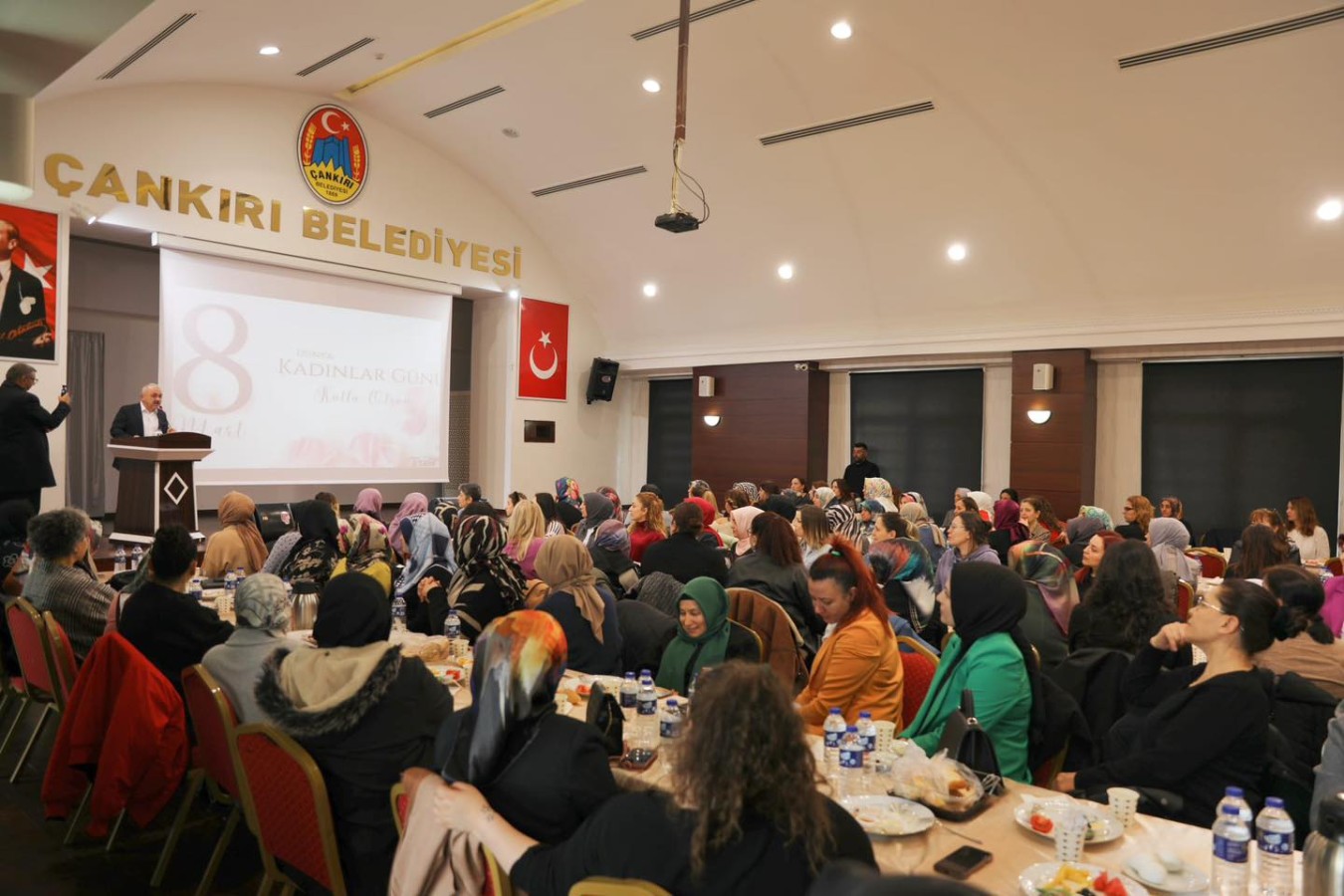 63’ü büyük 178 projeyi gerçekleştirirken yeşerten de güzelleştiren de hep kadın çalışanlarının olduğunun altını çizen Esen, “Atıl arazileri tarım arazilerine dönüştürdük, üretimimizin en önemli halkası kadınlarımız oldu. Yöresel ürünlerimizi tescilletirken doğru tarifler ile bize yön veren Çankırılı kadınlarımız oldu. Kente estetik katalım dedik, peyzaj düzenlemelerinde yeşerten de çiçek diken de hep kadınlarımız oldu. Sıcak demediler, soğuk demediler, alın terleri ve emekleri ile hep sahada koşuşturdular. Tesisler açtık, servisin en önemli halkası kadın çalışanlarımız oldu. Halk otobüsleri aldık, önemli güzergâhları kadın şoförlerimize emanet ettik. Belediye Meclisimizde karar alırken kadın üyelerimizin bakış açılarından faydalandık. Kooperatif kurduk, kadınlarımız yaptı, şişeledi, paketledi ve sattı. Çalışmalarımızı halkımıza doğru anlatalım dedik, kadın çalışanlarımızın gözünden anlattık. Çankırı’ya Yöresel Mutfak Evi kazandırdık, kadınlarımızın maharetli ellerinden çıkan ürünleri ziyaretçilere tattırdık. Kadınlarımız kafa kafaya verdi, geçmiş ile gelecek arasında köprü kurarak eski yöresel ürünleri bir araya getirdi ve Çankırı Kültür Evi açtık. Voleybol takımı kurduk. Kulübümüz bünyesinde faaliyet gösteren Kız Voleybol Takımımız başarılara imza atarken, kadın çalışanlarımız “Biz de varız!” dedi ve kurumlar arası voleybol turnuvasında mücadele verdi. Kısacası, elinizi attığınız her işi parlattınız, her toprağı yeşerttiniz.” dedi.