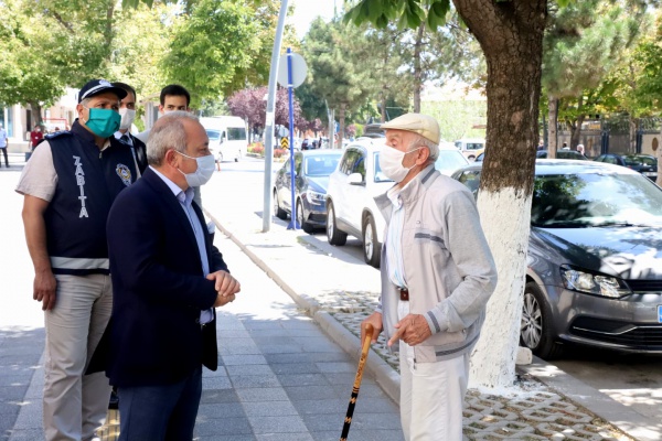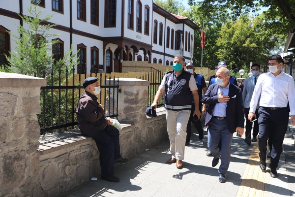 Çankırı’da vatandaşların yoğun olarak kullandığı alanlar, corona virüs önlemleri kapsamında denetlendi. Çankırı Valiliği Halk Sağlığı Müdürlüğü Pandemi Komisyonu ve İl Emniyet Müdürlüğü ekipleri ile Çankırı Belediyesi zabıta ekipleri, vatandaşların maske kullanımını ve sosyal mesafeye uygunluğunu kontrol etti.  Şehir merkezindeki iş yerlerin denetimini üstlenen Çankırı Belediyesi, Başkan Esen önderliğindeki zabıta ekipleri ile birlikte iş yerlerini tek tek gezerek Covid–19 salgınına karşı alınan önlemleri inceledi. Alışveriş yapan vatandaşlar ile satış yapan esnaflara, maske ve sosyal mesafe kuralları bir kez daha hatırlatıldı. Başkan Esen, halk sağlığını korumak amacı ile vatandaşların yoğun olarak kullandıkları tüm alanlarda maske ve sosyal mesafe denetimlerini sürdüreceklerini belirtti.