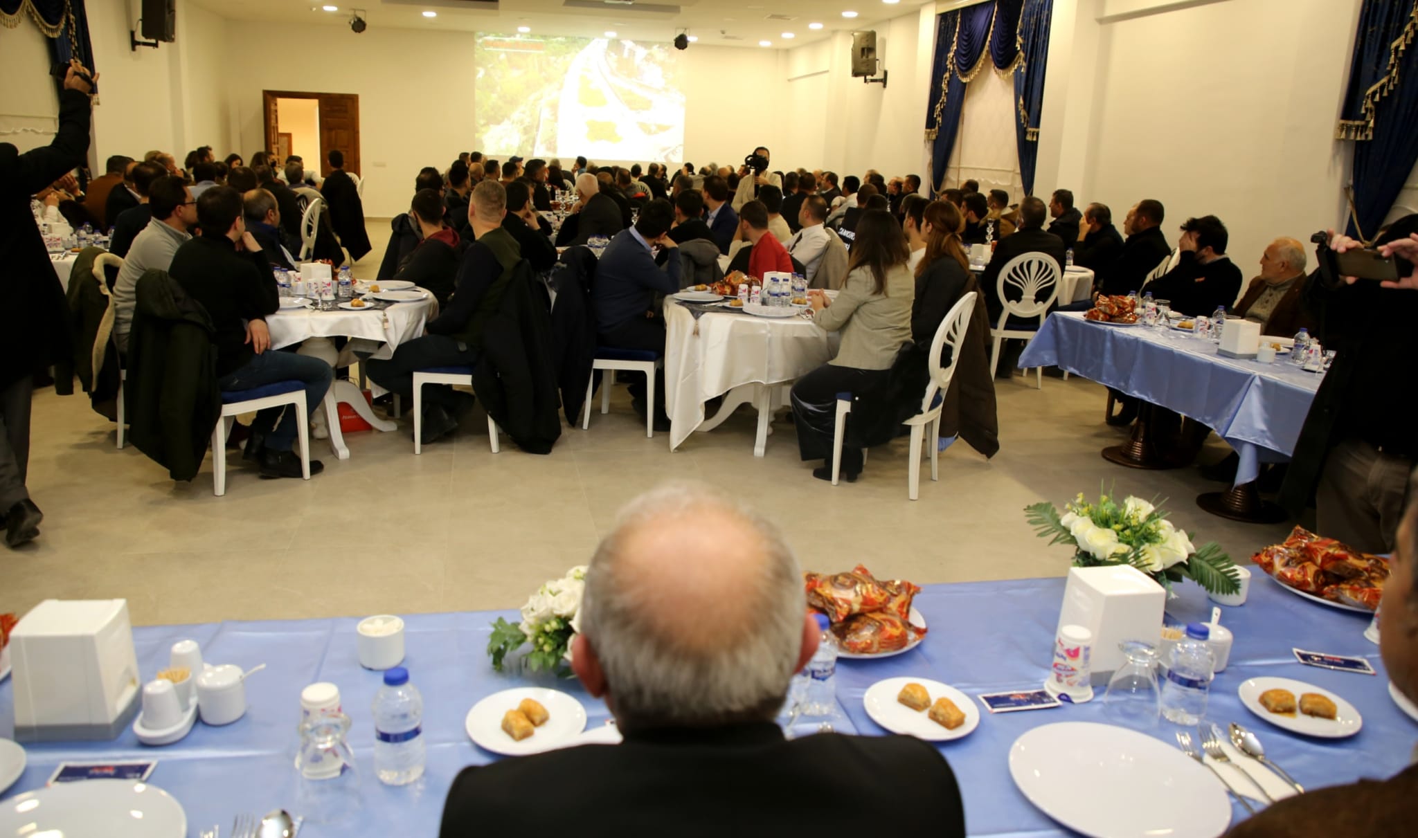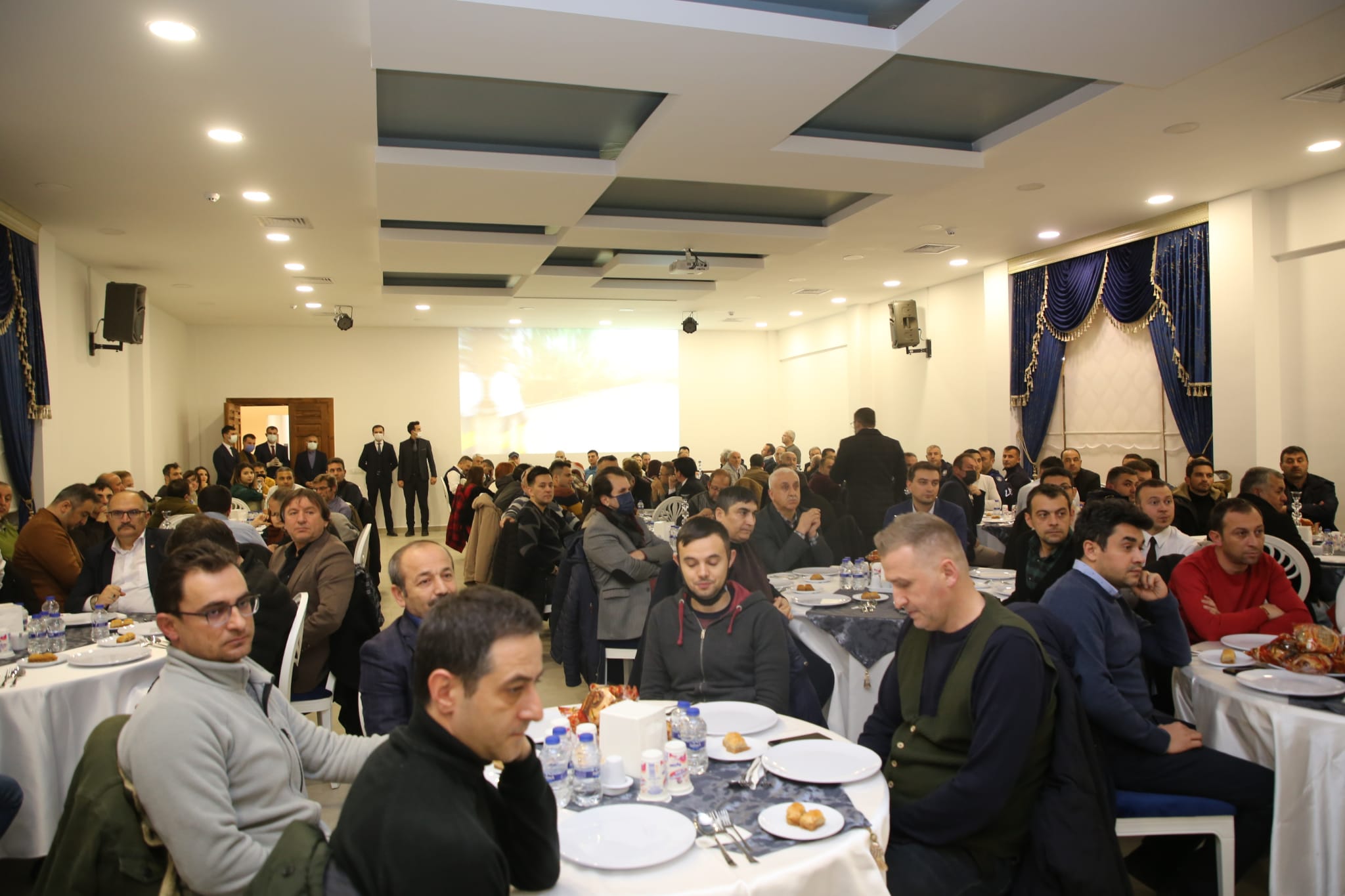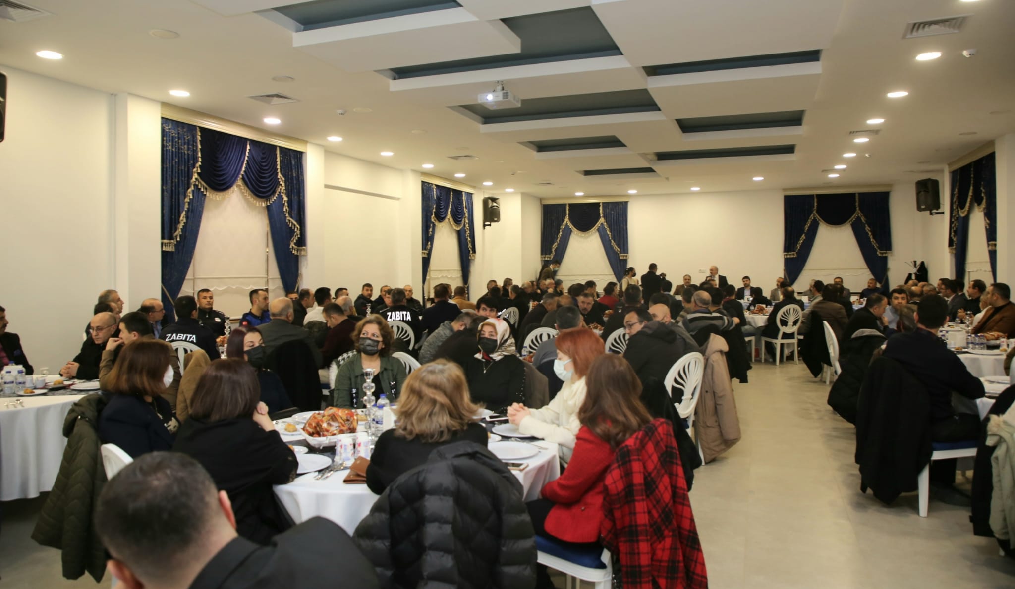 Belediye çalışanları ile akşam yemeğinde bir araya gelen Esen, Basın Yayın ve Halkla İlişkiler Müdürlüğü tarafından hazırlanan “Sayılar ile Hizmetin Kısa Özeti” Haber Turunda anlatılan 2,5 yıllık süreçte gerçekleştirdiği çalışmaları personeli ile birlikte izledi. Çankırı ve Çankırı halkı için yapılan çalışmalara katkı sağlayan her bir çalışanına teşekkür eden Esen, “Çankırı Belediyesi olarak şehrimiz için bir ekip şeklinde çalışıyoruz. Hepimiz bir makinenin dişlisi gibiyiz. Bir tanesi eksik olsa biz bunları başaramayız. Yeni yaptığımız tesisimizde kapsamlı bir yemeği mesai arkadaşlarımız ile yapmayı uygun bulduk. Bu zamana kadar değerli Belediye Başkanlarımızın hepsinin de mutlaka emeği geçmiştir. Ama her yiğidin bir yemek yiyişi var. Belediyemizin bütçesini önemli ölçüde kalkındırarak doğru kullanmak öncelikli çalışmamız oldu. Maalesef hizmet sürecimizde pandemi dönemi hepimizi sıkıntıya uğratsa da hizmet etmekten geri durmadık. Belediye olarak doğumdan ölüme kadar halkımıza hizmet etmek ile mükellefiz. Biz ne kadar güler yüzlü hoş seda ile karşılarsak vatandaşımızın sıkıntısını minimize etmiş oluruz.” dedi.