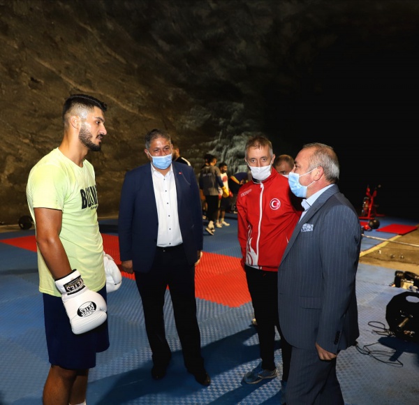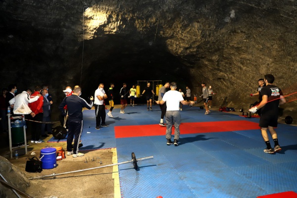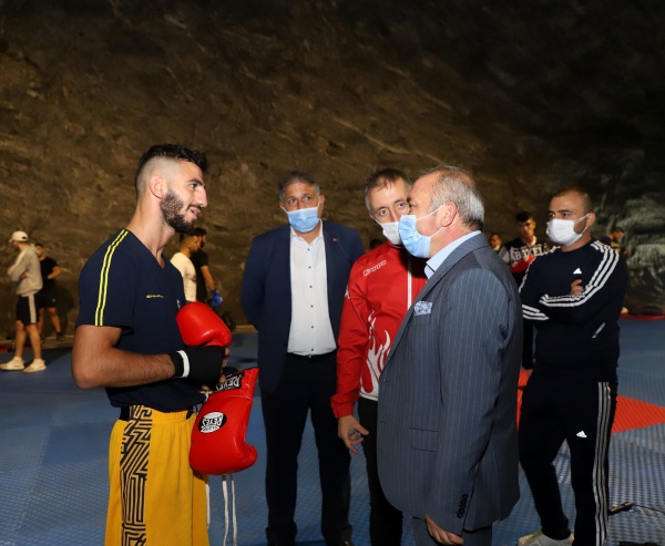 Çankırı Belediye Başkanı İsmail Hakkı Esen, Türkiye Boks Milli Takım kafilesi ile Yer Altı Tuz Şehri’nde bir araya geldi. 2021 yılında düzenlenecek Tokyo Olimpiyatları için Çankırı’da kampa giren Türkiye Boks Milli Takımı, antrenmanlarını yerin 150 metre altında bulunan beş bin yıllık tuz mağarasında devam ettirdi.