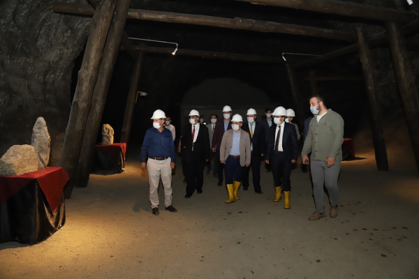 Yaklaşık 5 bin yıldır tuz üretimi için kullanılan ve turizm amaçlı kullanılmak üzere galeri çalışmaları yapılan Tuz Mağarası’nı gezen Vali Ayaz, Çankırı’nın turizm hacmini arttırmak için yapılan çalışmalar ve projeler hakkında Belediye Başkanı İsmail Hakkı Esen’den bilgi aldı. Tuz Mağarası’nı Yer Altı Tuz Şehri’ne dönüştürerek turizmin cazibe merkezi haline getirmek istediklerini ifade eden Esen, “Milletimizin sofrası, Çankırı’nın tuzu ile lezzetleniyor. Şimdiki hamlemiz ise herkesi Tuz Mağaramıza çekmek. Bunun için Mağaramızın giriş kısmı için yaptığımız projenin otopark ve sosyal tesisteki yapı çalışmaları tamamlanma aşamasında. Yer Altı Tuz Şehri Projemiz sayesinde Çankırı’nın turizmine büyük bir güç ve ivme kazandıracağız. Çankırı’mıza yılda 1 milyon ziyaretçi getirme hedefimizle beraber Çankırı ekonomisine ve istihdama büyük katkı sağlayacağına gönülden inanıyoruz. Bu hamlemizi Çankırı Kaya Tuzu Festivali’yle de taçlandırmak ve bu mirası herkese yerinde göstermek istiyoruz.” dedi.