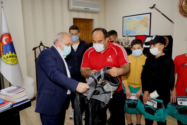 Çankırı Belediye Başkanı İsmail Hakkı Esen, Belediyespor Kulübü Güreş Takımı’na kispet ve pırpıt hediye etti.
