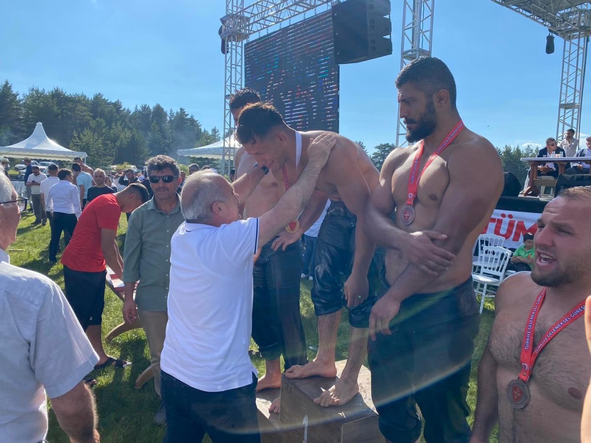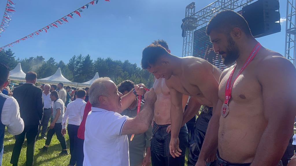 Pehlivanlarına madalyalarını takdim eden Başkan Esen, güreşçilerini tek tek tebrik etti.