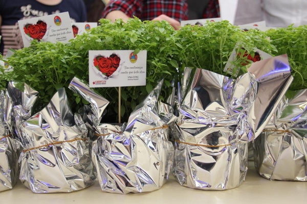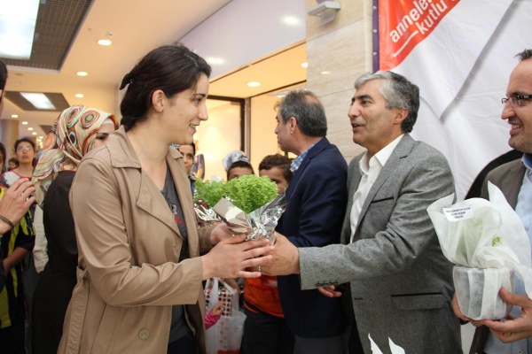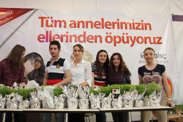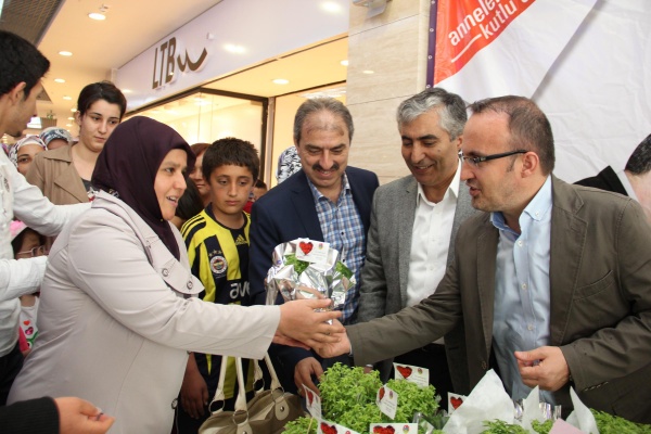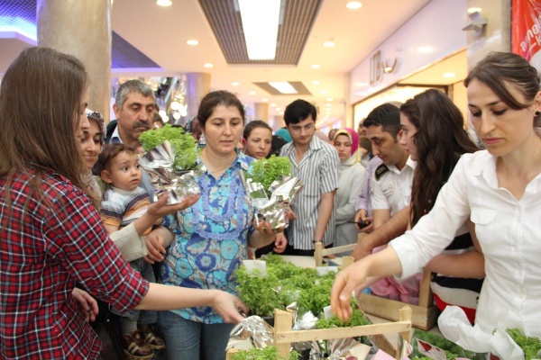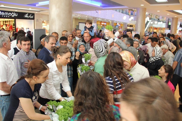 Yunus AVM'de kurulan stant yoğun ilgi görürken, binlerce fesleğen çiçeği annelere dağıtıldı.