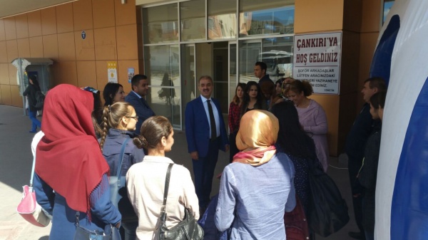Çankırı Belediyesi Üniversiteli Kız Öğrenciler Koordinasyon Merkezince yürütülen karşılama hizmetinde öğrenci ve velileri ile görüşülerek ihtiyaç belirtilen konularda onlara yol gösteriliyor. Ulaşımdan barınma ihtiyacına kadar birçok soruna çözüm önerileri sunan belediye yetkilileri, şehre ilk defa gelen öğrenci ve ailelerinin Çankırı hakkında iyi izlenimlere sahip olması için çalışıyor. Stantta; Çankırı, üniversite ve belediyenin öğrenci çalışmalarına ait tanıtım broşürleri dağıtılırken üniversiteli geçlere ve ailelerine de çay, poğaça ve Çankırı’yı tanıtan hediyeler veriliyor.