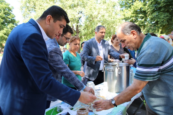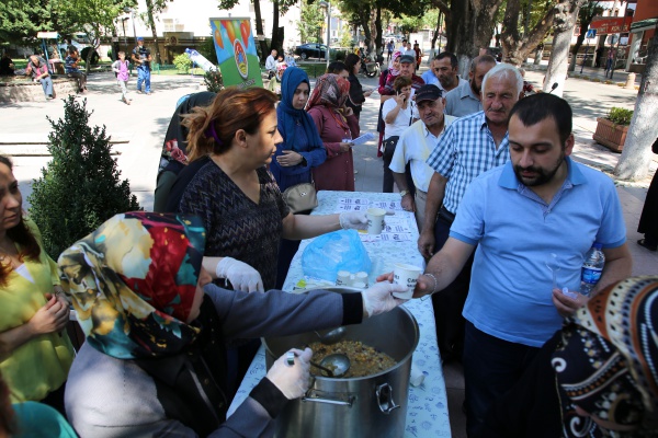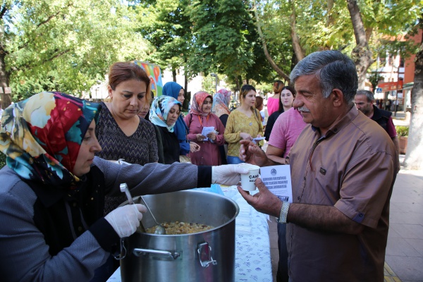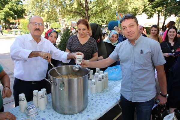 Çankırı Belediyesi, bir geleneği daha devam ettirerek Muharrem ayının birlik ve bereketi için vatandaşlara aşure dağıttı. Standın başına geçen Çocuk Akademisi çalışanları, kendi elleri ile yaptıkları aşureyi vatandaşlara ikram etti. Dağıtıma Belediye Başkan Yardımcısı İhsan Bostan ile Özel Kalem Müdürü Fatih Atıcı da katıldı. Karatekin Parkı’nda öğle arası yapılan etkinliğe mesaiden çıkan memurlar, işçiler, öğrenciler ve diğer vatandaşlar da büyük rağbet gösterdi.   Çankırı Belediyesi, aşure gününün birlik ve beraberliğini bu yıl da sergiledi.
