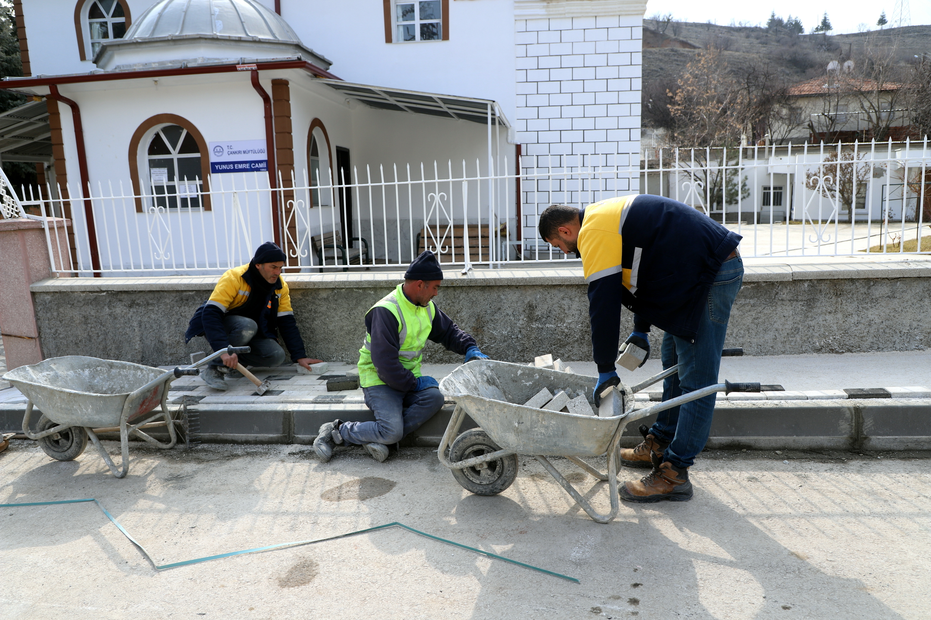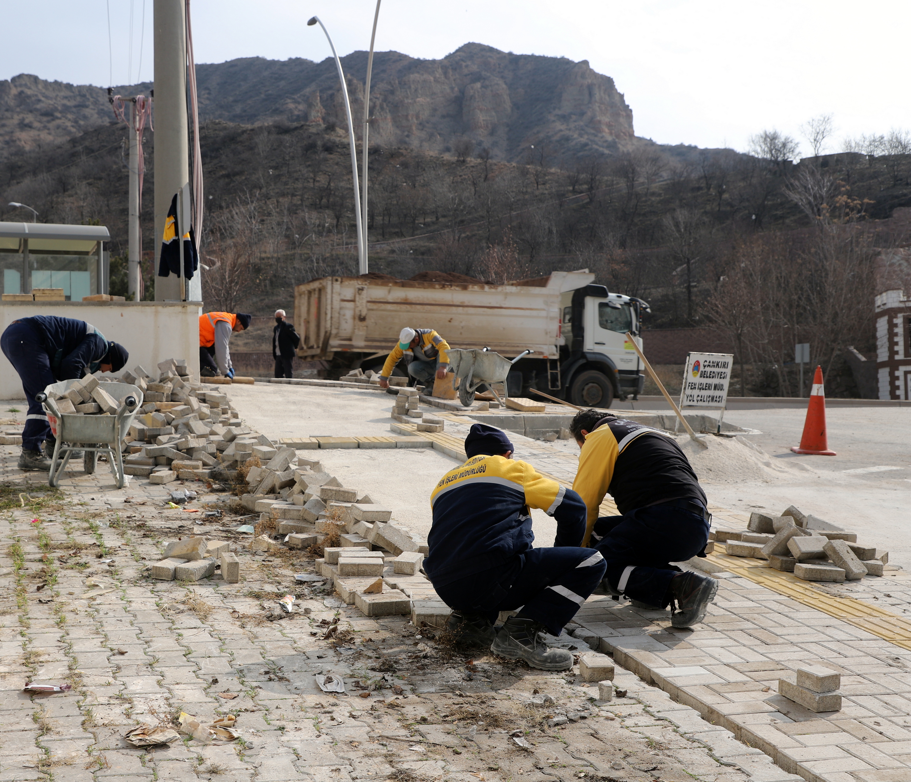 Çankırı Belediyesi, yoğun kar yağışı ve buzlanma nedeni ile gerçekleştirilen kar küreme ve tuzlama çalışmalarının zarar verdiği yol ve kaldırımları bakıma aldı.