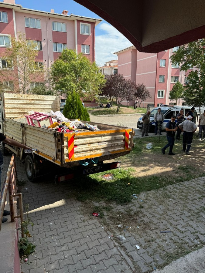 Çankırı’da Fatih Mahallesi Tuzlu Bağları Berke Sokak TOKİ Konutları CY-10 adresinde yaşlı bir adamın evini çöp ev haline getirmesi üzerine evden çevreye yayılan kötü kokulardan rahatsız olan mahalle sakinleri, Belediye Zabıta Müdürlüğüne şikâyette bulundu. Şikâyet üzerine harekete geçen ekipler, kullanılamaz hale gelen, sağlık ve görüntü yönünden çevreyi tehdit eden çöp evi temizlemek için kolları sıvadı. Evin tüm odalarının çöp yığınları ile dolu olduğunu gören temizlik ve zabıta ekipleri, kullanılamayacak duruma gelmiş kıyafetleri ve katı evsel atıkları dışarı çıkardı. Evden yaklaşık üç kamyon dolusu çöp yığını toplandı. İnsan sağlığını ve çevreyi tehdit eden çöp evin temizliğinin ardından bölge sakinleri de rahat bir nefes aldı.