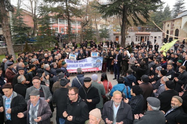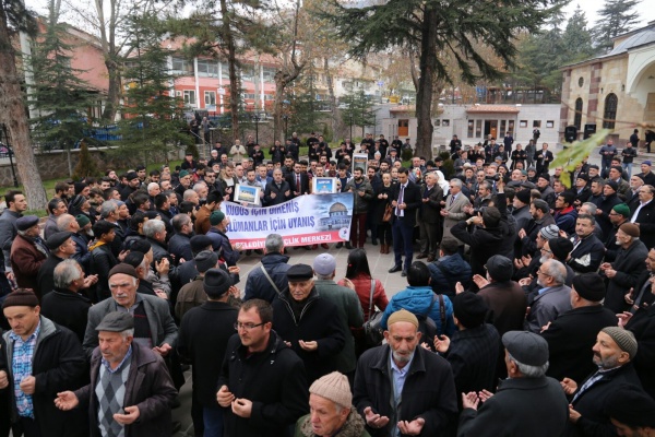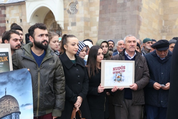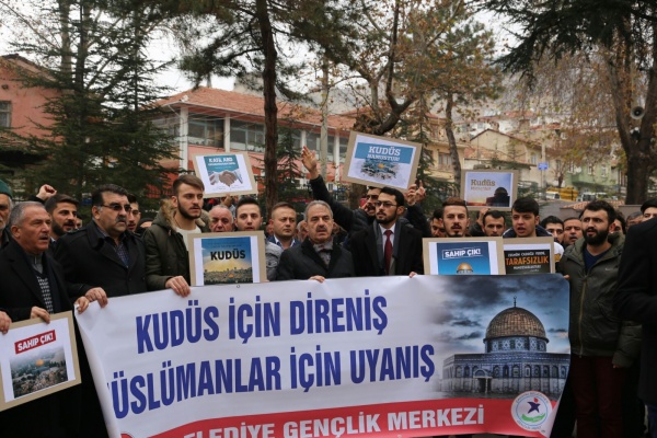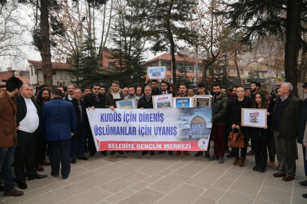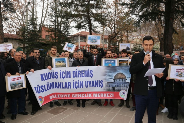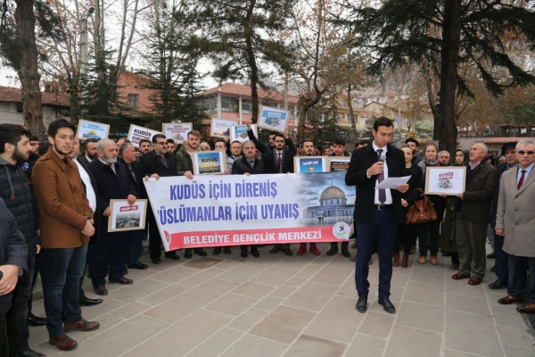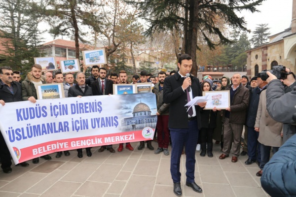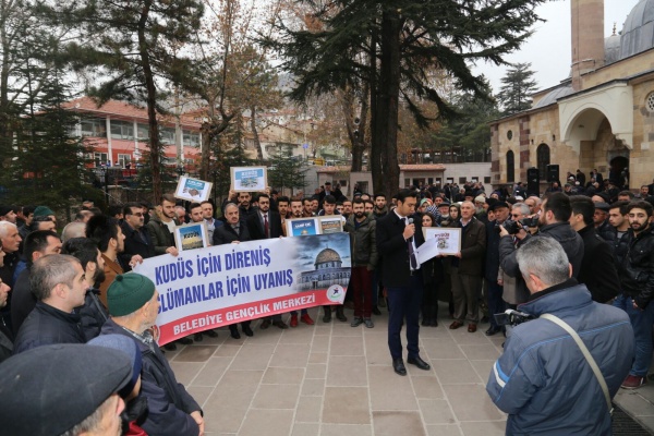Bütün dünya şunu bilmelidir ki yeri ve zamanı geldiğinde Türk gençliği olarak malımızla ve canımızla Golan Tepelerine, Sina yarımadasına, zeytin dağına gidecek ve canımızla müminlerin namusu olan Kudüs’ü zalimlerin elinden alacağız. Kudüs’teki cehennem vadisinde müminlerin Allahu Ekber sesleri yankılanacak ve cehennem vadisi Zalimlere mezar olacaktır. Kudüs’e İslam sancağını dikmek, Davut kulesinde Ezan-ı Muhammediye’yi okumak arzusuyla milyonlarca genç hazır beklemektedir. Ezanın okunduğu her toprak Türkün vatanıdır. Müslümanların namusudur! Öyle inanıyorum ki bir gün Kudüs’te bu zulüm sona erecek ve Allahın mümin kulları yeryüzüne varis olacaklardır. Bu vesile ile Trump’ın, Kudüs’ü İsrail’in başkenti olarak tanımasının bir anlam ifade etmediğini belirtmek isterim.” ifadelerine yer verdi. Basın açıklamasının sonunda Kudüs için dualar edildi.