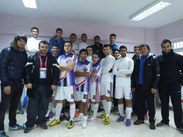 Maçtan sonra oyuncular ve teknik heyet soyunma odasında galibiyet fotoğrafı çektirdiler.