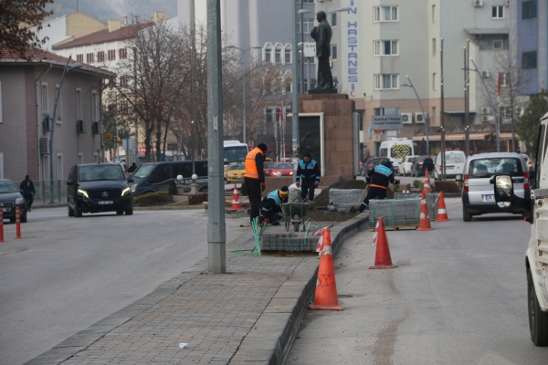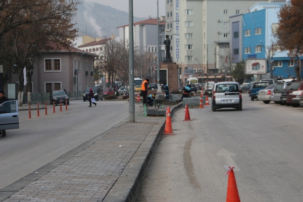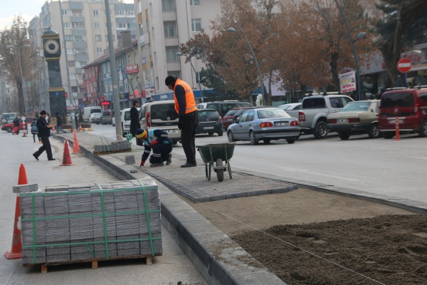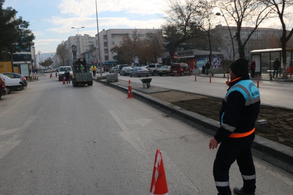 Belediye Meydanı ile Anıt alanı arasındaki refüj niteliksiz bitkilerden arındırılarak bordürler çekilip kilitli parke ile döşendi. Yatay bordür kullanılan çalışmalar ile meydan rahat bir görünüme kavuştu. Soğuk hava şartlarına rağmen ekipler, Belediye Meydanındaki refüj çalışmalarının yanı sıra şehrin muhtelif bölgelerinde de kaldırım ve yol çalışmalarını aralıksız sürdürüyor.