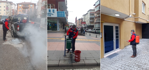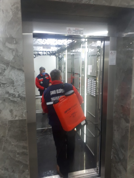 Yeni tip corona virüs hastalığına yakalanarak testi pozitif çıkan vatandaşların yaşadığı apartmanlar dezenfekte ediliyor. İl Hıfzıssıhha Kurulunca belirlenen binaların girişleri, katları, asansör içleri, hane kapıları, zilleri ve merdiven boşlukları Çankırı Belediyesi Temizlik İşleri Müdürlüğü ekipleri tarafından virüs ve bakterilere karşı etkili malzemeler ile temizleniyor. Hijyen çalışmaları, test sonucu pozitif çıkan ve evde karantinaya alınan hastaların yaşadıkları binalarda yapılıyor.