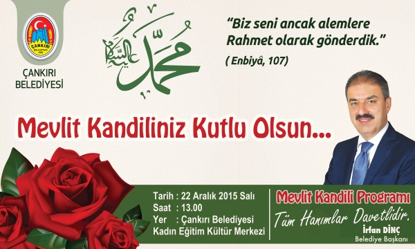 Çankırı Belediyesi, Peygamber Efendimizin doğduğu gün olan Mevlit Kandili’ni Kadın Eğitim Kültür Merkezinde kutlayacak. Yarın saat 13.00’te kadınlara yönelik hazırlanan programda; Kur’an-ı Kerim tilaveti, semazen gösterisi, sohbet, ilahiler ve dualar yer alacak.