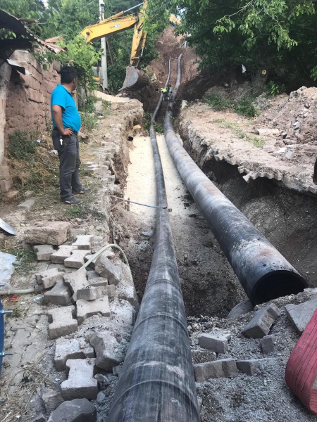 Çankırı Belediyesi Su ve Kanalizasyon Müdürlüğü, vatandaşları önceden bilgilendirerek şehir merkezinin Yenimahalle, Aksu, Abdulhalik Renda, Buğday Pazarı, Tabakhane, Fatih, Karatekin, İnciliçeşme, Cumhuriyet Mahalleleri ile Karataş Mahallesinin bir kısmında yapılan bir günlük su kesintisinin ardından başarılı bir çalışmaya imza attı. Kayıp ve kaçaklar ile mücadele amacı ile Karataş Mahallesi Kayabaşı Sokak’ta gerçekleştirilen çalışmalarda 35 kişilik ekip yer aldı. Öncesinde hazırlıkları tamamlanan çalışmalar kapsamında; 500 mm ve 250 mm çaplı asbest borular 560 mm ve 280 mm çaplı polietilen borular ile değiştirildi. Bölgede toplamda 280 m hat imalatı yapıldı. Çalışmalarda 1 adet paletli ekskavatör, 4 adet Beko Loder, 3 adet kamyon, 1 adet Isuzu NPR, 2 adet traktör kullanıldı. Belediye Başkanı İsmail Hakkı Esen 24 saatin sonunda tüm mahallelere içme suyunun verildiğini söyleyerek kayıp ve kaçakların önlenmesi amacı ile gerçekleştirilen çalışmalarda asbest kullanımının azaltılmasının da önemli bir sonuç olduğunu kaydetti.