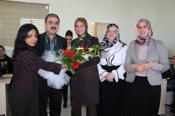 Bütün hanımlar adına teşekkür eden Hanımlar Lokali sorumlularımız Hacer Rukiye Yıldırım ve Leyla Akduman tarafından Belediye Başkanımız İrfan Dinç’e çiçek takdim edildi.