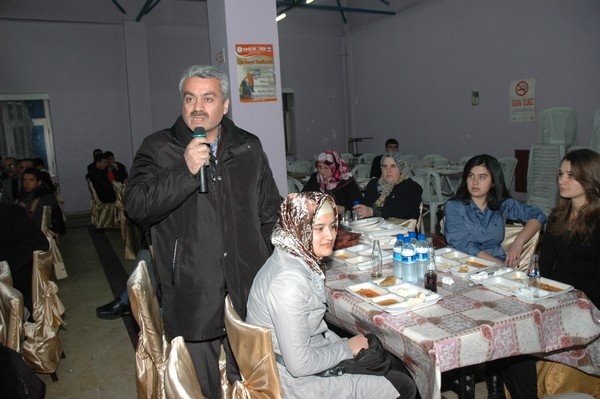 Öğrencilerin morallerini zinde tutmak için farklı yöntemleri uygulamaya koyan Belediye Başkanımız İrfan Dinç, 09.01.2012 Salı günü Uzay Düğün salonunda öğrenciler, öğretmenler ve velilerle kaynaşma ve tanışma yemeği düzenledi.
