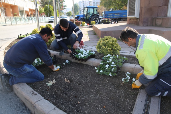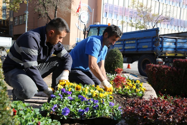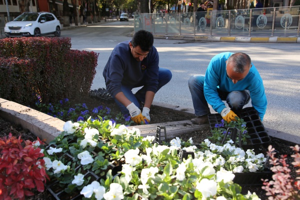 Belediye Park ve Bahçeler Müdürlüğüne bağlı ekipler,  peyzaj çalışmaları kapsamında şehrin muhtelif alanlarını kış şartlarına uygun mevsimlik menekşelerle renklendiriyor. Çalışmalarda kırmızı, beyaz, sarı, ve mor olmak üzere dört farklı renkte menekşe kullanılıyor.