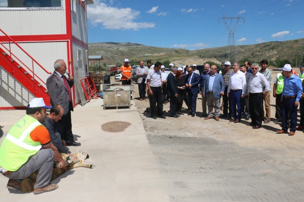 Şantiyenin deneme üretiminde başkan yardımcıları, birim müdürleri ve Fen İşleri Müdürlüğü ekipleri hazır bulundu. tesisin ilk asfaltını ürettiği günde kurban kesilerek hep birlikte dualar edildi.