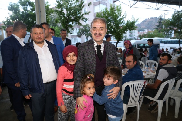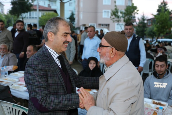 Bir ve beraber olmanın önemine değinen Dinç, “Birlikte en azından senede bir defa dahi olsa bir iftar sofrasında aynı muhitte, aynı mahallede, aynı bölgede oturan insanların yan yana gelmesi, birbirlerine tebessümle bakmaları Allah katında çok büyük öneme ve değere sahiptir. Biz bunu sağlamaya çalışıyoruz. O eski güzel mahallelilik kültürünün paylaşma ve dayanışma duygularını öne çıkartıyoruz. Gördüğünüz gibi herkes çok mutlu. Herkes bu birlik ve beraberliğin feyzi bereketinde. Ramazanı Şerifin manevi ikliminden yararlanma adına beraberce o hazzı doyasıya yaşıyorlar. Bende çok mutluyum. Çok teşekkür ediyorum.” ifadelerini kullandı.