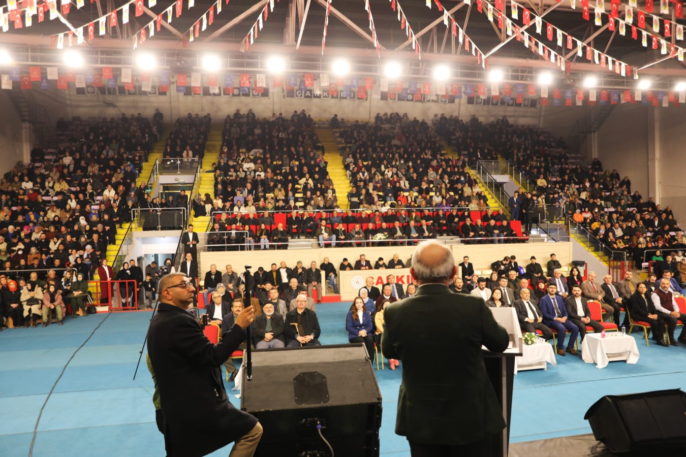 Hasan Fehmi Gökşen Spor Salonu’nda düzenlenen program, 6 Şubat depreminde hayatını kaybeden vatandaşların anısına saygı duruşu ile başladı. Programın açılış konuşmasını yapan Çankırı Belediye Başkanı İsmail Hakkı Esen, sözlerine “Acımız taze, gönlümüz yekpare, aklımız her daim deprem bölgesinde!” ifadeleri ile başladı.