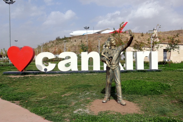 Modern kentleşmenin göstergelerinden sayılan sanatsal yapılardan kızı ile birlikte öz çekim yapan baba heykeli Recep Tayyip Erdoğan Parkı’nda bulunan ÇANKIRI yazısının önüne, İmam Hatip Külliyesi’ni çizen ressam heykeli ise Uçak Kütüphane yanına külliyeyi görecek şekilde yerleştirildi. Cam elyaf takviyeli polyester malzemeden yapılan sokak heykellerinden baba kız heykeli 190 cm boyutunda, ressam heykeli ise 2x2 m’lik alana çalışıldı.