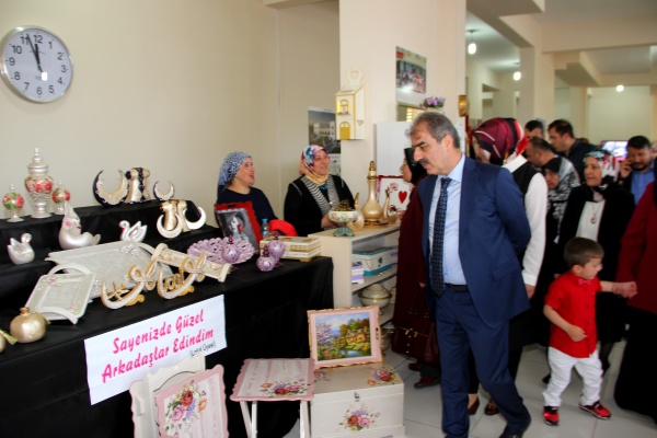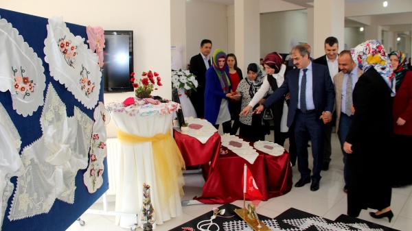 Sergi açılışında kadınlara hitap eden Belediye Başkanı İrfan Dinç, şehit annelerine ve şehitlerimize olan vefa borcunu ödemek adına anlamlı bir açılış gerçekleştirdiklerini söyleyerek, "Değerli hanımlar, biz sizlere bu lokalleri açıyoruz. Aslında ben de bu kadarını beklemiyordum. Ama bu milletin mayası çok sağlam. Burada hanımlarımızdan şöyle talepler geldi: Burada spor yapıyoruz, çeşitli kurslar görüyoruz; ama biz Kur'an-ı Kerim de öğrenmek istiyoruz. Mevcut yerlerimiz kısıtlı olduğu için biz lokallerimizin yan taraflarını da kiralayarak, hanımlarımızın eski yazıyı öğrenmeleri, bu arzularını yerine getirmek adına onların hizmetine sunduk. Hanım efendilerimiz, hem farklı kurslarla el becerilerini ve yeteneklerini geliştirirken, hem de bizim değerlerimizin eğitimini, bizim inancımızın gereği olan eğitimi de öğrenmiş oluyorlar" ifadelerini kullandı.