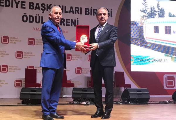 Türkiye Belediye Başkanları Birliğinin düzenlediği gece heyecanlı görüntülere sahne oldu. Milli Eğitim Bakanlığı Şura Salonu’nda gerçekleştirilen törende Türkiye’nin 7 bölgesinden toplam 35 Belediye Başkanına ödülleri verilirken, ikinci tur oylaması sonucu Türkiye’nin en beğenilen 5 Belediye Başkanı da ödüllerini aldı. Çankırı Belediye Başkanı İrfan Dinç, Temalı Kütüphaneler Projesi ile Jüri Özel Ödülleri kapsamında Çankırı’ya bir ödül daha kazandırdı. Dinç; Uçak, Tren ve Gemi Kütüphaneler sayesinde kitap okumayı özendirerek “Çankırı’da kitap okumayı sevmeyen çocuk kalmayacak.” dedi.