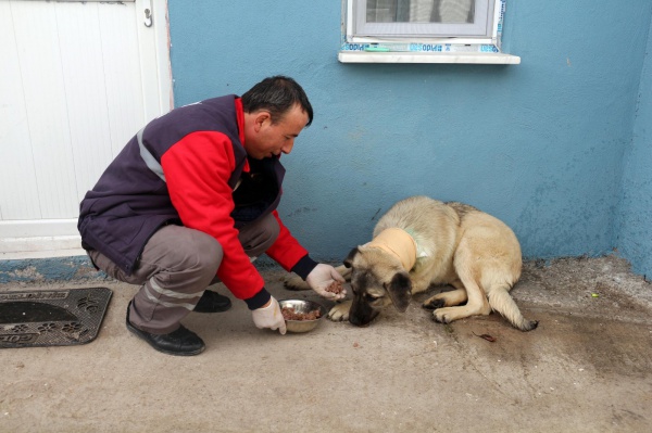 Çankırı’da kangal türü bir köpeğin boynuna yavru iken takılan tasma, büyüyen köpeğin boynuna küçük gelerek zamanla derin kesiğe sebep oldu. Eldivan yolu kenarında ağır yaralı bir halde bulunan köpek, Çankırı Belediyesi Sokak Hayvanları Tedavi ve Rehabilitasyon Aracı’na alınarak ilk müdahalesi yapıldı. Daha sonra Belediyenin Sokak Hayvanları Rehabilitasyon Merkezine götürülen köpeğin boynunda doku bütünlüğü bozukluğuna yol açan tasma, operasyon ile çıkartılarak yaralı köpeğe ilaç tedavisine başlandı. İki haftadır tedavisi süren köpeğin durumunun iyi olduğu bildirildi. Tedavilerinin tamamlanmasının ardından köpeğin hayvan dostları tarafından sahiplendirilmesi bekleniyor.