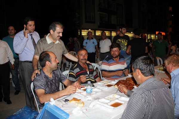 Belediye Başkanımız İrfan Dinç ve Belediyemiz Başkan Vekili Rafet Alemdar, Belediyemiz Başkan Yardımcıları Mithat Kılıç, Arif Çıyan ve Mehmet Çayır’ın da katıldığı yemeğe mahalle halkı büyük ilgi gösterdi. 3000 sandalyenin yer aldığı mahalle yemeğinde bazı vatandaşlar da oturacak yer bulamayınca işyerlerinin önünde iftar açmak durumunda kaldı. Samimi ve sıcak bir atmosferde gerçekleşen iftar yemeğinde belediye personeli yemek servisi yaparken yoğun kalabalık nedeniyle vatandaşlar da yemek dağıtımına yardımcı oldu.
