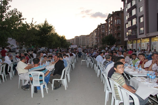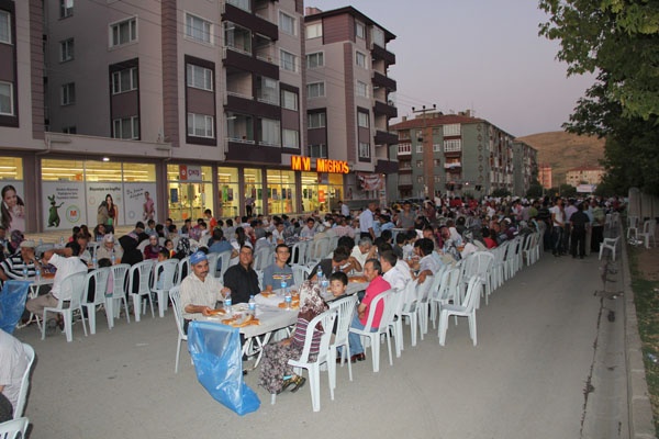 Kucaklama Taşı Mevkii altından Migros önüne kadar yol tek taraflı olarak kapatılarak masalar kuruldu ve mahalle halkına iftar yemeği düzenlendi.