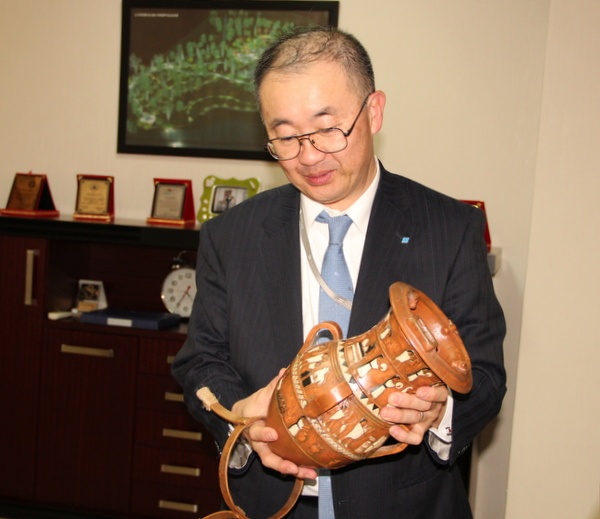 Japon misafirlerine Türkiye’nin çok önemli ve çok isabetli bir yerine yatırım yaptıklarından bahseden Dinç, “Hititlerin eserlerinin çıktığı bölgede yatırım yapıyorsunuz. Bu saatten sonra burası sizin eviniz. Bu şehir sizin şehriniz, bu makam sizin makamınız. Biz yabancı değil, kardeşiz artık. Ülkeniz için en önemli, en çok değer verdiğiniz şahsiyet kimse bize onun fotoğrafını gönderirseniz kaya tuzundan heykelini yaptırmak isteriz.” önerisi ve dünyada benzeri bulunmayan İnandık Vazosu örneğini hediyesi ile Japon yatırımcıların bir kez daha dikkatini ve ilgisini çekmeyi başardı.