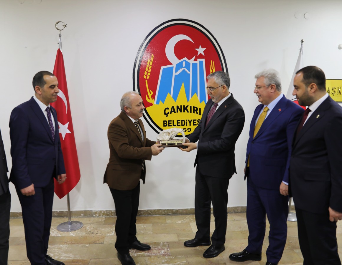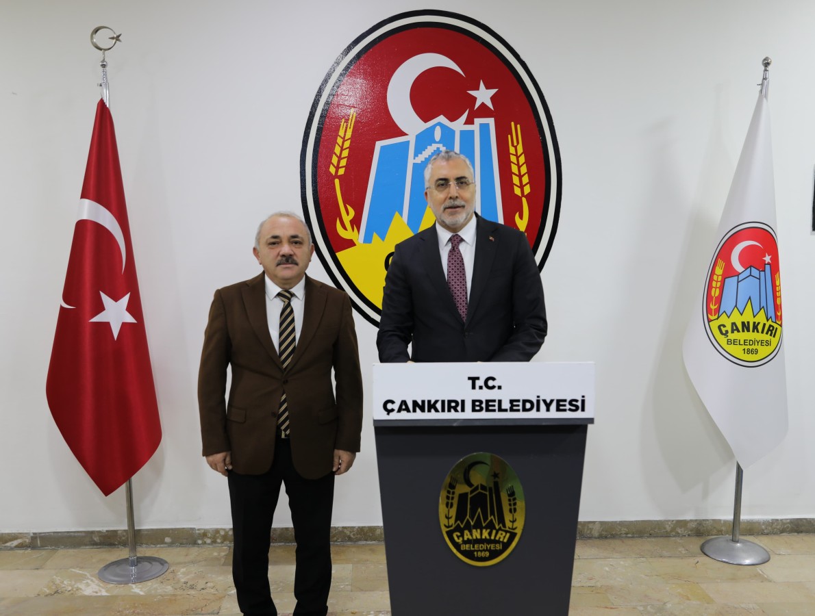 Çankırı Belediye Başkanı İsmail Hakkı Esen, bir dizi ziyaretlerde bulunmak ve programlara katılmak için Çankırı’ya gelen Çalışma ve Sosyal Güvenlik Bakanı Prof. Dr. Vedat Işıkhan ve beraberindeki heyeti makamında ağırladı. Çalışmalar hakkında bilgi alan Bakan Işıkhan, Başkan Esen’i tebrik etti.