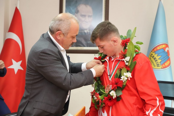 Özgen ve sporcuları Meclis Salonu’nda ağırlayan Belediye Başkanı İsmail Hakkı Esen, şampiyonlukları ile göz dolduran genç güreşçisi Fatih Özgen’i Çankırı halkı adına karşılayarak tebrik etti. Başkan Esen, ülkesine ve memleketine büyük gurur yaşatan başarılı güreşçi Fatih Özgen’i ödüllendirdi. Esen, “Kulüp çalışmalarımız içerisinde göğsümüzü en çok kabartan güreş branşı olmuştur. Ata sporumuzda mili takım kadrosunda yer alan sporcularımızı görmek gençlerimizin spor dallarına daha fazla yönlendirilmesi yönünde bizleri teşvik ediyor. Fatih Özgen, azimli çalışması sayesinde alnının teri ile girdiği tüm müsabakalardan başarı ile çıkmasını bildi. İstikrarlı yükselişi ve aldığı ödüller ile güvenimizi ve desteğimizi sağlamlaştırdı. Zaten Seyfettin Karadeniz gibi önemli şampiyonluklar elde etmiş Antrenörümüze de kendisi gibi başarılı genç güreşçiler yetiştirmek yakışırdı. Bu başarıda büyük katkısı olan Seyfettin Hocamız başta olmak üzere ailesine ve emeği geçen herkese canı gönülden teşekkür ediyorum. Belediye Başkanı amcaları olarak sporcularımıza elimizden gelen tüm desteği sağlayacağız. Fatih Özgen ile gurur duyduğumuzu Çankırı halkı adına bir kez daha vurgulamak istiyorum.” dedi.