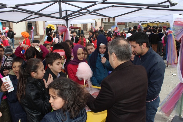 Kutlamalar kapsamında gündüz İsmet İnönü Okulu'nda öğrencilere çeşitli ikramlar ve eğlenceler düzenlendi. Okul bahçesinde düzenlenen resmi törenin ardından Belediye tarafından açılan stantlarda çocuklara macun şeker, pamuk şekeri ve patlamış mısır ikram edildi.