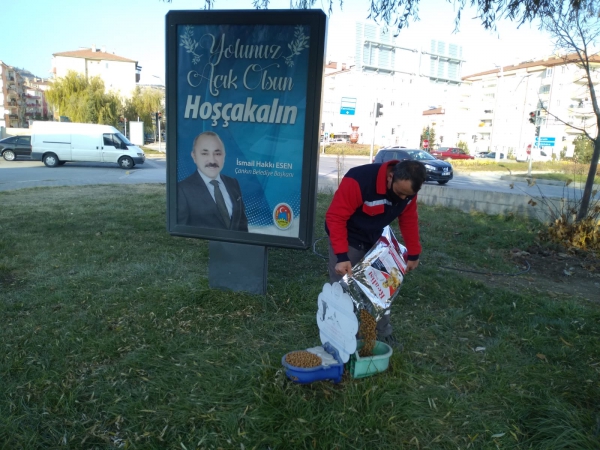 Çankırı Belediyesi, Covid 19 sebebi ile sokağa çıkma yasağının uygulandığı günlerde sokak hayvanlarının zor durumda kalmaması için çalışmalarını yoğunlaştırdı. Şehrin 23 farklı noktasında bulunan mama ve suluklar, ihtiyacı karşılayacak şekilde dolduruluyor. Belediye Başkanı İsmail Hakkı Esen, rutin olarak verdikleri hizmetin yasaklar süresince sokak hayvanlarının besin bulmakta zorlanmasını önlemek amacı ile besleme odaklarını dolu tuttuklarını ve bu yöndeki çalışmalarını yoğunlaştırdıklarını belirtti. Esen, “Can dostlarımıza sevgi göstermek yetmez, onların hayati ihtiyaçlarını da karşılamak zorundayız.” dedi.