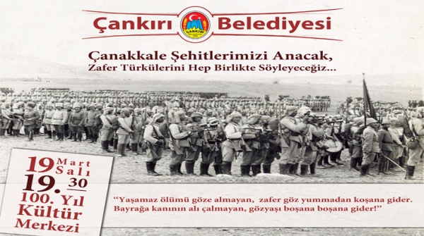 19 Mart Salı günü saat 19.30’da 100. Yıl Kültür Merkezinde gerçekleştirilecek programda, tarihte eşine az rastlanan bir kahramanlık destanı olan Çanakkale Zaferi kutlanacak ve 250 binden fazla şehidimiz anılacak.