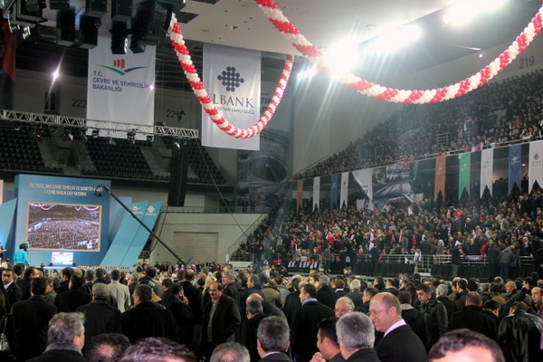 Yoğun katılımın olduğu törende, Çankırı ve Trabzon illeri yaptıkları tezahüratlarla dikkatleri üstlerine çekti. Alkışlar ve tezahüratlarla konuşması sık sık kesilen Başbakan Erdoğan, gerçekleştirilen törenle toplam 1.5 milyar liralık dev yatırım yaptıklarına vurgu yaptığı konuşmasını şehirlerin medeniyetimizdeki yerinden de bahsetti. Güçlü şehirleri sağlam taşların değil, güçlü insanların inşa edebileceğine dikkat çeken Erdoğan konuşmasını şöyle sürdürdü: “Vahşi, her yerde vahşi; medeni, her yede medenidir. İnsan yaşadığı yere hiçbir şey katmıyor, hızla tüketiyorsa şehirde de yaşasa vahşidir. Ama insan yaşadığı yere bir şey katıyor, aldığı kadar da veriyorsa köyde yaşasa bile medenidir. Biz tabiattan aldığı kadar tabiata vermeyi bilen bir medeniyetin mensuplarıyız. Evinin atık suyunu, fabrikasının atık suyunu da o akarsuya verenler de var. Bunlara medeni diyebilir miyiz, diyemeyiz. Toprağın, suyun, havanın tüm bir tabiatın sana, bize bir emanet olarak verildiğini bilecek ve bir emaneti taşımanın bilinciyle, şuuruyla hayatımızı idame ettireceğiz. Çok katlı binalar dikmek bir toprağı şehir yapmaz. Yollar, köprüler inşa etmek, bir toprağı şehir yapmaz. Şehri şehir yapan içindeki insandır. İnsanın huzurudur, mutluluğudur, güvenliğidir. Şehirler insanla zevklenir. Biz de şehir öyle bir şeydir ki, merhum Ahmet Hamdi Tanpınar'ın deyimiyle 'Konuşurken sohbetinize girer, yaşantınızı etkiler, rüyalarınıza, hülyalarınıza istikamet verir. Dünyaya Selimiye'nin, Süleymaniye'nin, Fatih'in, Hacı Bayram Camii'nin penceresinden bakan bir çocukla, dünyaya yoğun araç trafiğinin, kirli, puslu havanın, sokaklardan kanalizasyonun arasından bakan çocuğun tasavvuru aynı değildir. Sokağa çıktığında korna sesleriyle, gürültüyle, bağırış çağırışla karşılaşan bir çocukla, çocuğa çıktığında sebillerle, çeşmelerle, ağaçlarla, huzurlu sokaklarla, birbirlerine gülümseyen, selam veren insanlarla karşılaşan bir çocuğun muhakemesi aynı değildir. İşte onun için şu tarihi gerçeği tekrar tekrar düşünmek ve söylemek durumundayız; güçlü şehirleri sağlam taşlar inşa etmez, güçlü şehirleri güçlü insanlar inşa eder. Biz işte böyle şehirlerin hayallerini kuruyoruz.” dedi.