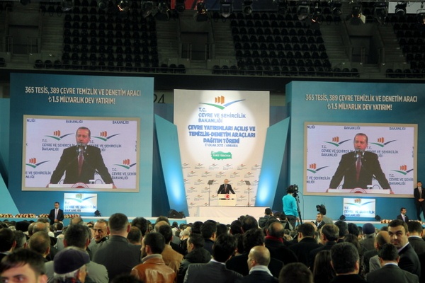 Çevre ve Şehircilik Bakanlığı'nın, maliyeti 1.5 milyar lirayı bulan 389 temizlik ve hizmet aracı ile 365 tesis ve çevre yatırımlarının canlı yayınla açılışlarının yapıldığı törene; Başbakan Recep Tayyip Erdoğan, Çevre ve Şehircilik Bakanı Erdoğan Bayraktar, Ulaştırma, Haberleşme ve Denizcilik Bakanı Binali Yıldırım, Gıda Tarım ve Hayvancılık Bakanı Mehdi Eker, Gümrük ve Ticaret Bakanı Hayati Yazıcı ile çok sayıda yerel yönetim temsilcileri katıldı.