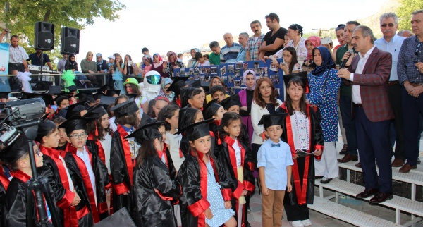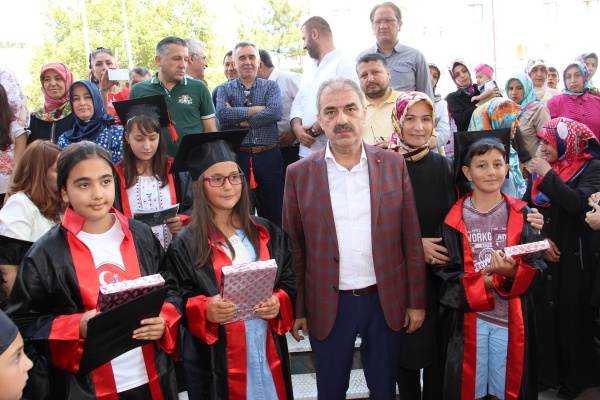 Belediye Meclis Üyeleri ve birim müdürlerinin de katıldığı programda yaz dönemi eğitim programına katılan 180 çocuk, katılım belgelerini Başkan Dinç’in elinden aldı.