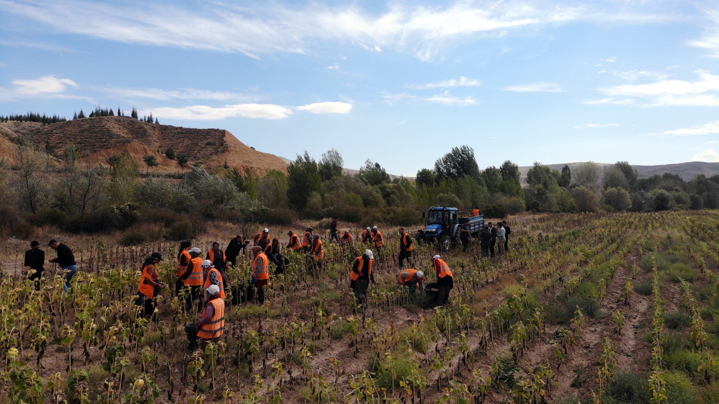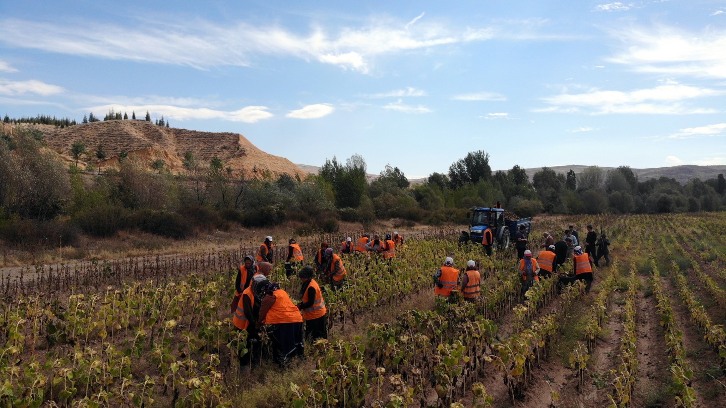 Çankırı Belediyesi, Yenice köyü mevkiinde bulunan tarlada yetiştirdiği yağlık ayçiçeklerinin ilk mahsulünü topladı. Toplanan ürünlerden elde edilecek bitkisel yağlar, ihtiyaç sahibi vatandaşlara dağıtılacak.