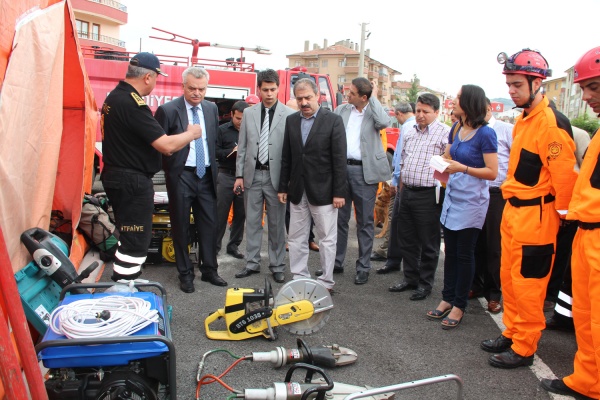 Program, İtfaiye Müdürü Ahmet Semerci tarafından İtfaiye Müdürlüğü bahçesine kurulan deprem çadırı, benzinli jeneratör, 40 ton ağırlığındaki yükleri kompresörle yukarı kaldırarak depremde hayat kurtaran hava yastıkları, demir kesici, beton kesici, halatlar, holigan seti, sedyeler, kesici ayırıcılar ve personel çantalarının içindeki yüksek açılı (ileri düzey) kurtarma araçlarının Vali Vahdettin Özcan, Belediye Başkanı İrfan Dinç ve basın mensuplarına tanıtımı ile sona erdi.