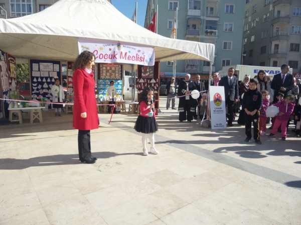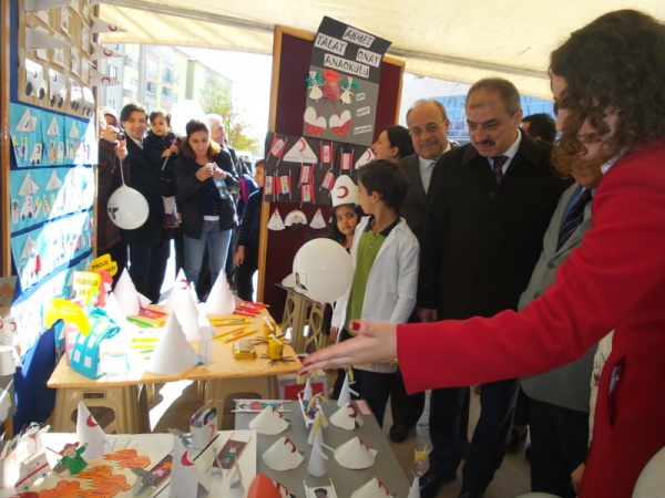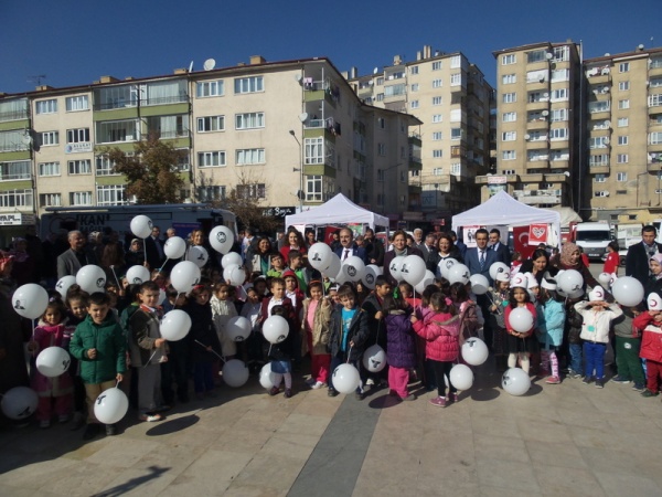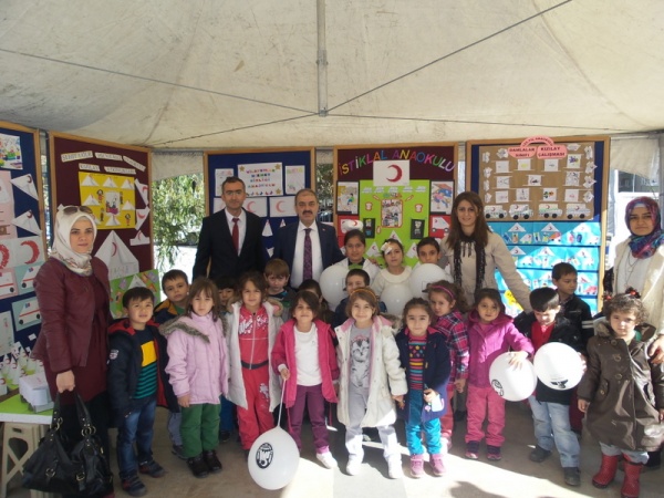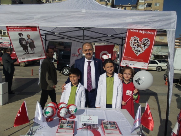 Program; kurulan temsili Kızılay çadırı, hemşire ve doktor kıyafetli çocuklar, Kızılay’ın kan bağışı aracı, standlar ve kırmızı-beyaz renkleri üzerinde taşıyan çocuklarla renkli görüntülere sahne oldu.