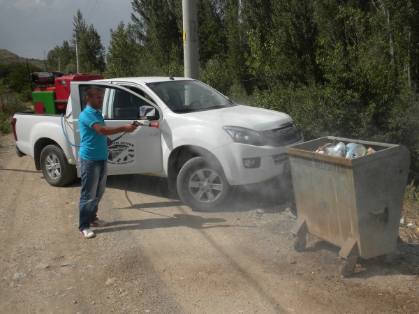 Şehirdeki bütün çöp konteynerlerinin ilaçlandığı uygulamada kara sinek ve diğer haşerelerden kaynaklanan salgın hastalıkların önlenmesi amaçlanıyor. Konteynerlerden gelecek kokuların da önüne geçildiği ilaçlama ile kent merkezi temiz bir havaya kavuşuyor.
