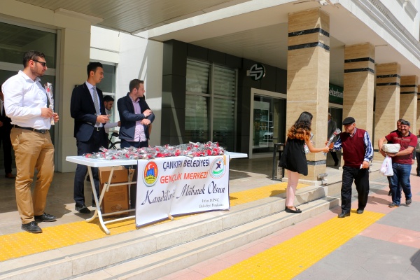 Çankırı Belediyesi, Belediye Sarayı önünde vatandaşların Mübarek Miraç Kandili'ni kutlayarak, karanfil ikramında bulundu. Belediye Gençlik Merkezi tarafından düzenlenen organizasyonda vatandaşlara 2 bin adet karanfil ikram edildi.