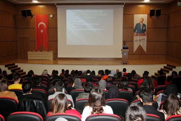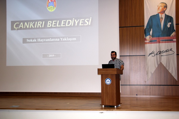 Uluyazı Kampusu İslami İlimler Fakültesi konferans salonunda gerçekleştirilen bilgilendirme toplantısında Çankırı Belediyesi’nin sokak hayvanlarının sorun olarak ele alınmasının daha fazla korunarak onların sorunlarına eğilme anlayışı ile hareket ettiği belirtildi. Çankırı’daki sokak hayvanlarının bakım, besleme, koruma, tedavi, sahiplendirme ve ev hayvanlarının sokağa terkedilme sorunlarına karşı etkili ve etkin önlemler almak için çalışmalar gerçekleştirdiklerini söyleyen konuşmacı Veteriner Hekim Öcal, “Bu çalışmalarımızın merkezini özellikle okul çağında olan çocuklarımızın bilinçlendirilmesi oluşturmaktadır. Gelecek nesilde oluşturulacak farkındalık, çevre başta olmak üzere doğanın en önemli parçası olan sokak hayvanlarımıza karşı duyarlılık çalışmaları ile başlamıştır. Artık, daha fazla çocuğun ve vatandaşın dikkatini çeken Tedavi ve Rehabilitasyon Merkezimiz, sokak hayvanlarımızı sıcak bir yuvaya kavuşturma konusunda da her geçen gün önemli bir artış göstermektedir. Okulların, merkezimizde yaptığı inceleme gezileri de bu sürecin önemli kısmını oluşturmaktadır.” dedi.
