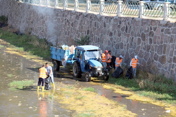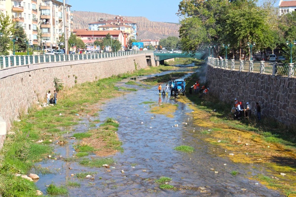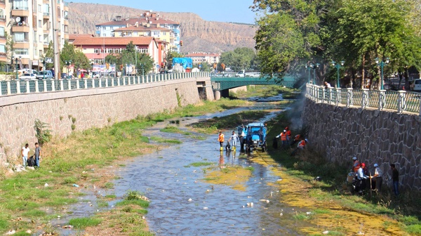 Hastane Köprüsü'nden başlayan temizlik çalışmaları, Atapark'ın altına kadar devam etti. Tatlıçay içerisinden toplanan çöpler traktörlerle çöp sahasına götürüldü.