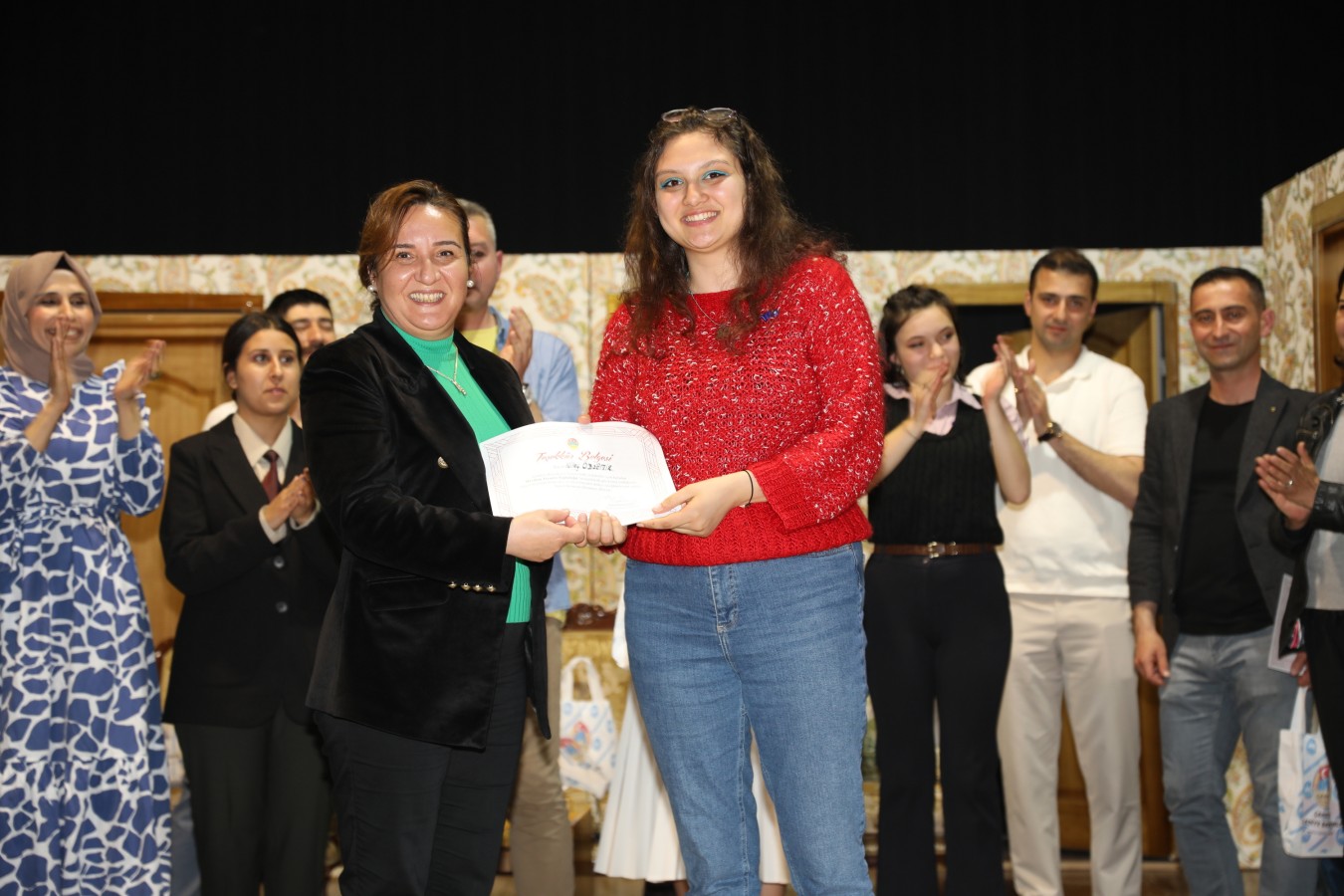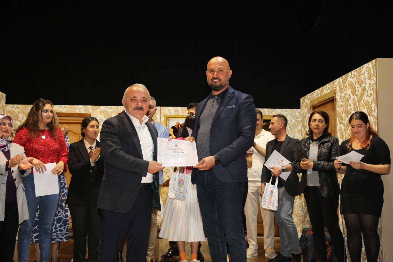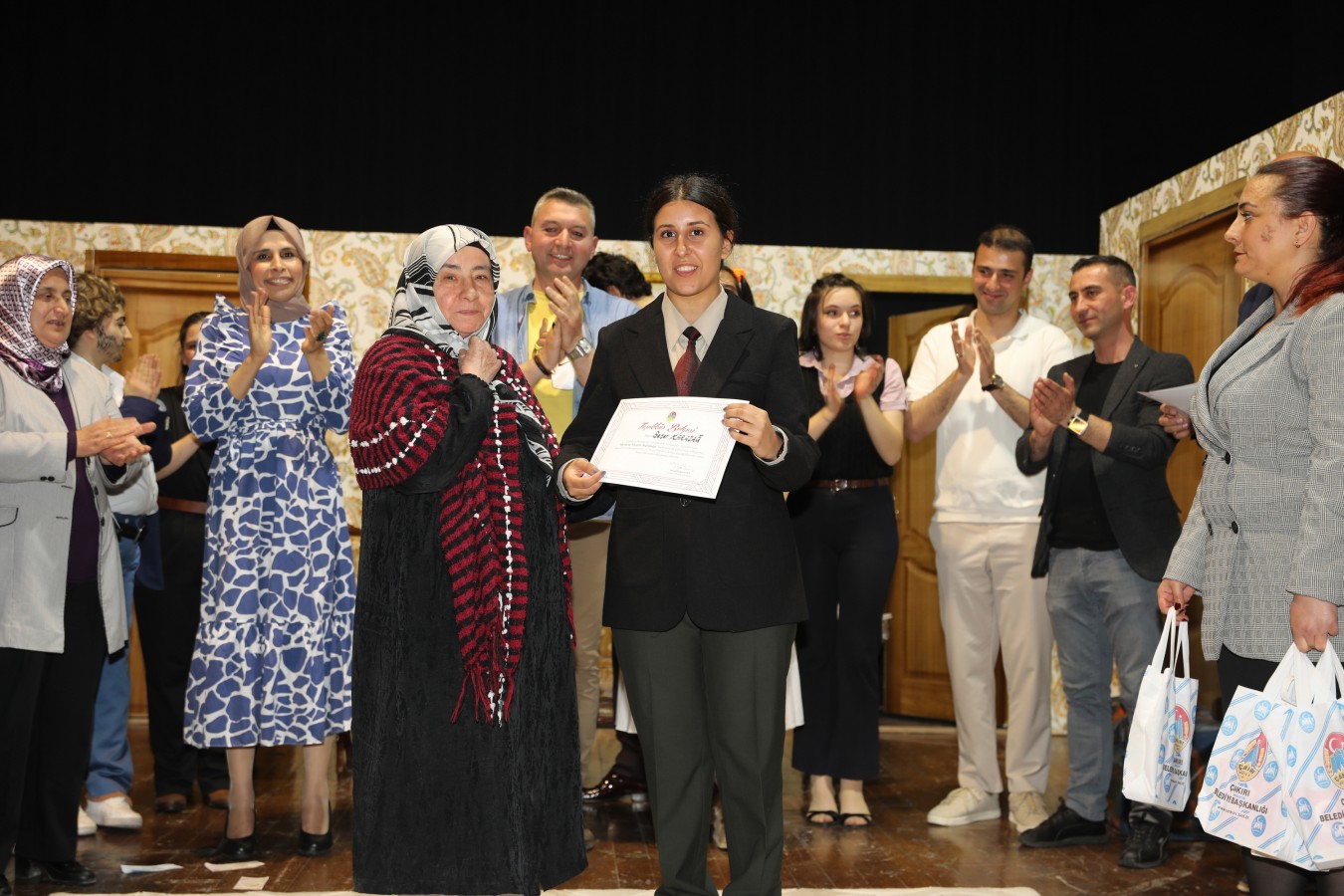 Oyunculara teşekkür belgelerini Belediye Başkanı İsmail Hakkı Esen ve protokol takdim etti. Başkan Esen, Çankırı Belediyesi bünyesinde oluşturdukları tiyatro topluluğunun önemli yetenekler çıkartacağını ilk performansları ile gördüklerini söyleyerek, bu topluluğun çalışmalarının aktif bir şekilde sürdüreceklerini belirtti. Çankırı halkını sosyal ve kültürel faaliyetler ile daha çok buluşturacaklarını ifade eden Esen, salonu dolduran vatandaşlara, keyifli bir oyun sahneleyen oyunculara ve emeği geçen herkese teşekkür etti.
